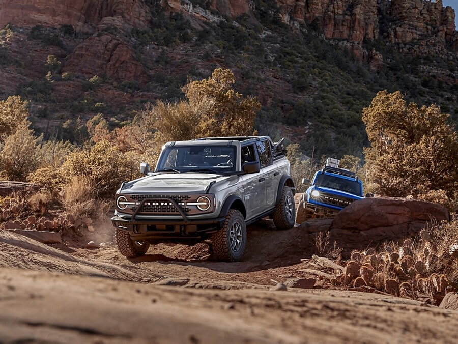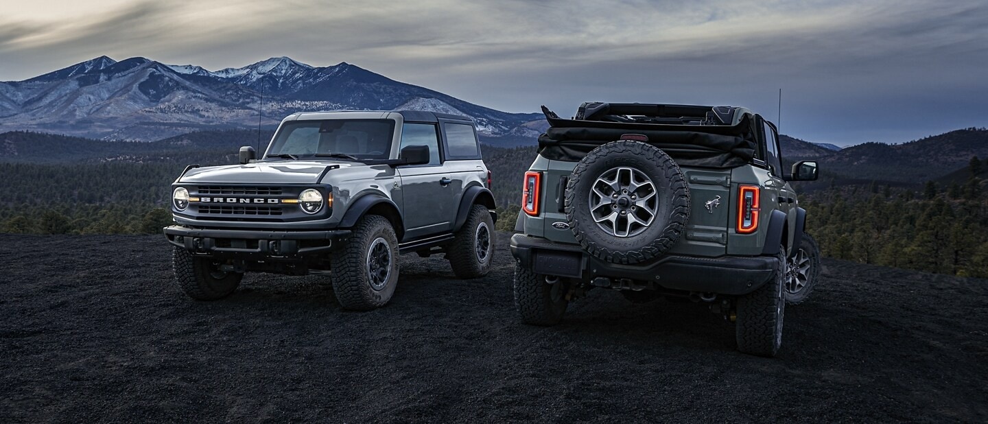 Flexibility comes standard on Bronco® SUVs. Choose the classic square shape with two extra-long doors for easier rear seat access, or the family-friendly four-door with a longer wheelbase. The doors are easily removed and stowed in the cargo area, or swapped out with a variety of styles to fit your particular adventure.